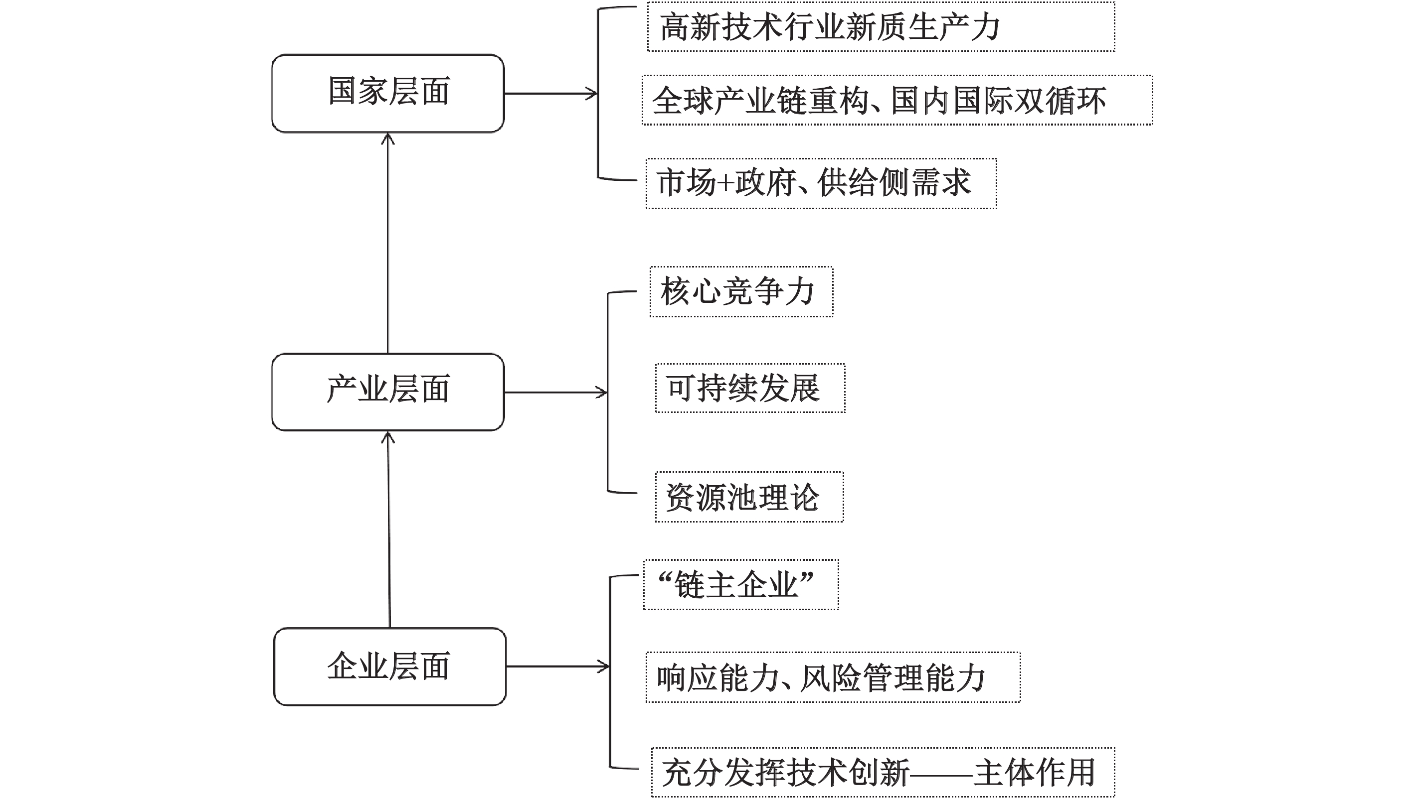 本文总结了不同层面应对实体清单制裁等“黑天鹅”事件的策略。从企业、产业和国家三个角度出发,归纳出自主创新、供应链产业链升级、提升产业链韧性等发展路径(如图4)。