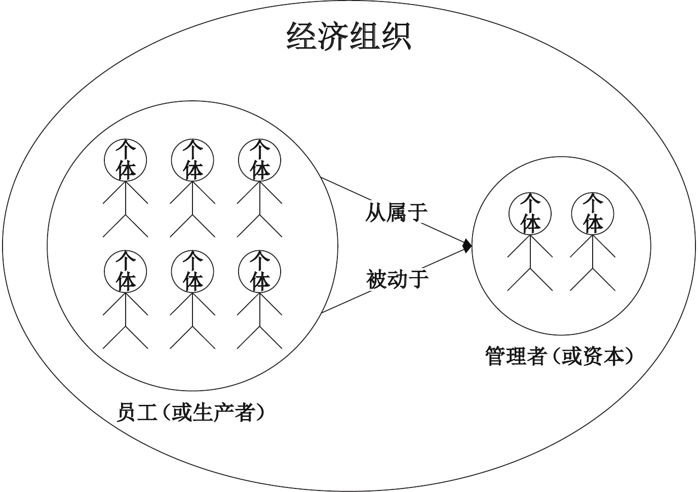 人的“主体性缺失”在科层制组织中得到强化。科层制是一种建立在一系列规则和制度基础之上,由纵向的“权力结构”及横向的“职能分工系统”构成,并由专门人员进行非人格化或技术化运作的组织结构(王凤彬,2009;竺乾威,2024)。一方面,科层制作为现代组织理性设计的基础,大大提升了员工(或生产者)在组织中的分工和协作效率,以及组织的生产、运营效果。另一方面,科层制在现代组织管理中的广泛应用,也生产和再生产了生产资料私有制前提下员工(或生产者)对管理者(或资本)的从属、被动关系,即维持了人在组织中的“主体性缺失”状态。换言之,科层制将人在组织中的“主体性缺失”状态以制度化的形式确立了下来。