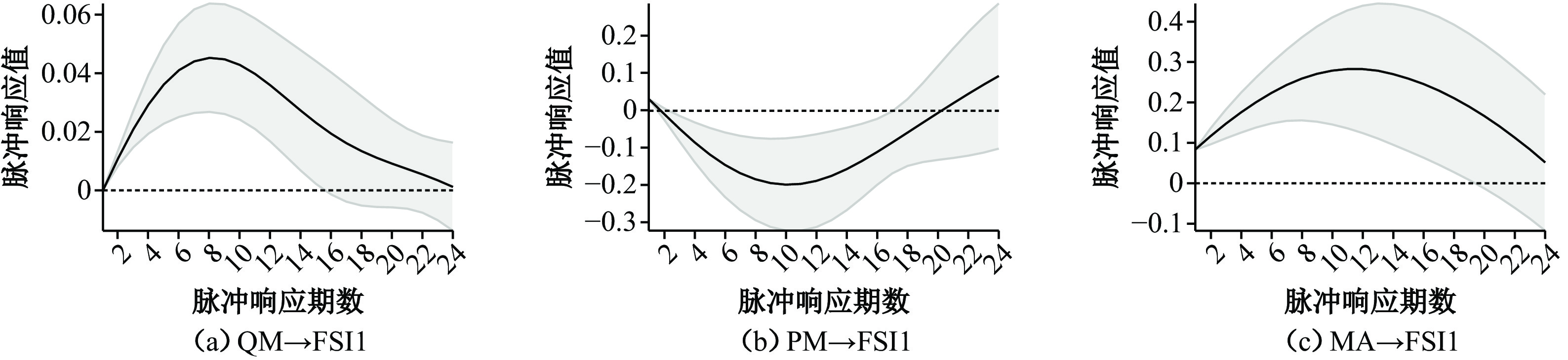 | 脉冲响应峰值 | 0.080 | 0.069 | 0.011 | 0.123 | −0.074 | 0.197 | 0.449 | 0.311 | 0.138 |
